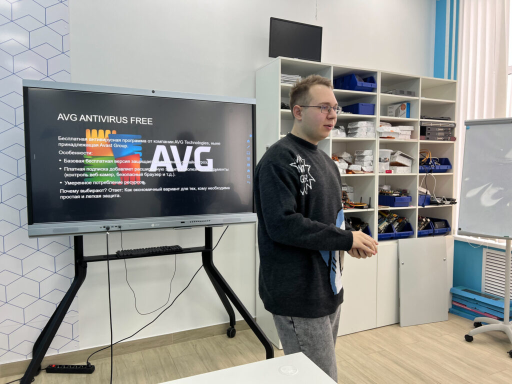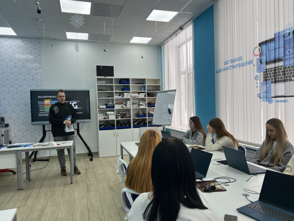Для гостей было проведено занятие под руководством педагога Староверова Данилы Васильевича. Ребята погрузились в важнейшую тему цифровой безопасности — компьютерные вирусы и защиту от них. На занятии они разобрались, какие угрозы существуют в сети, как не стать жертвой злоумышленников и какими инструментами нужно пользоваться, чтобы обезопасить свои данные в современном мире, полном технологий.
