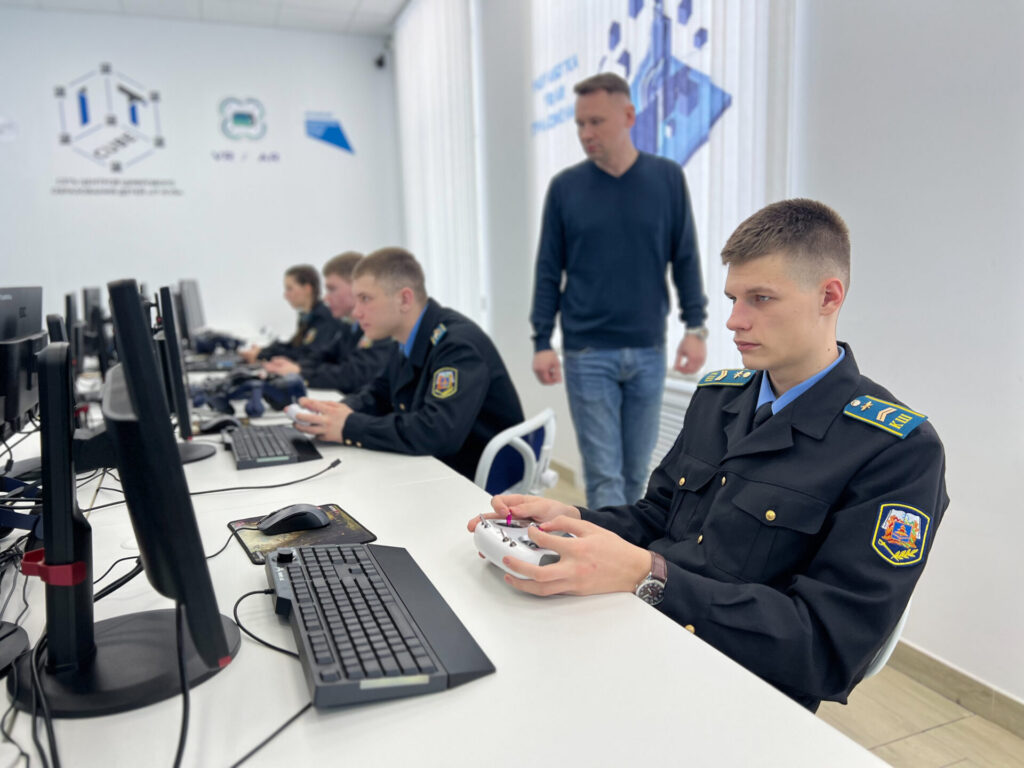 Параллельно другая группа под чутким контролем Дмитрия Сергеевича Ликсанова осваивала искусство пилотирования. На профессиональном симуляторе Flytonica будущие операторы дронов отрабатывали взлет, посадку, маневрирование и другие ключевые навыки, не рискуя техникой. Это лучший способ наработать мышечную память и понимание физики полета.