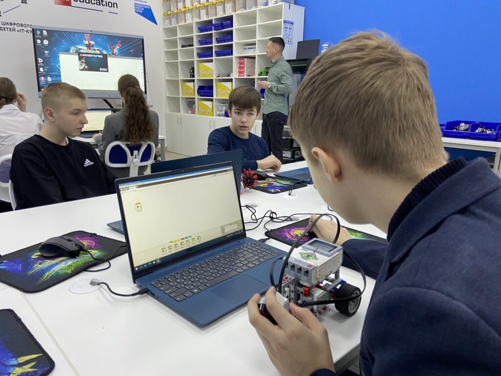 На занятии Дмитрия Сергеевича Ликсанова ребята увидели в действии ультразвуковые датчики и датчики цвета — «глаза» и «уши» современных роботов. Эти технологии лежат в основе автопилотов, автоматических линий и систем безопасности.