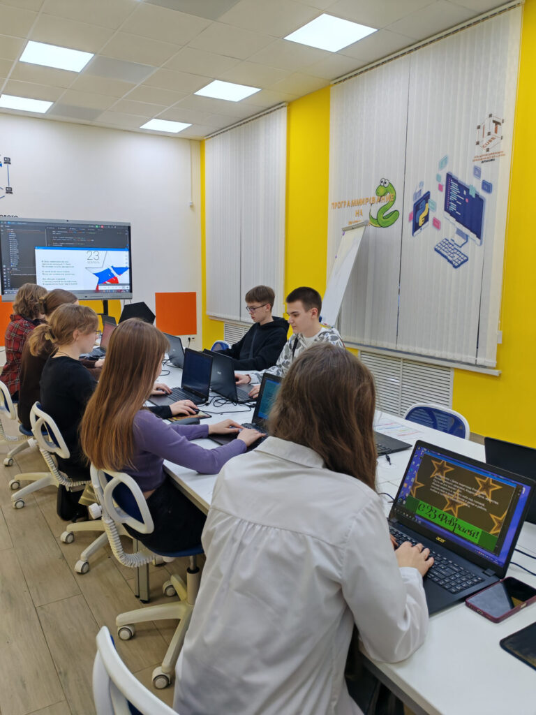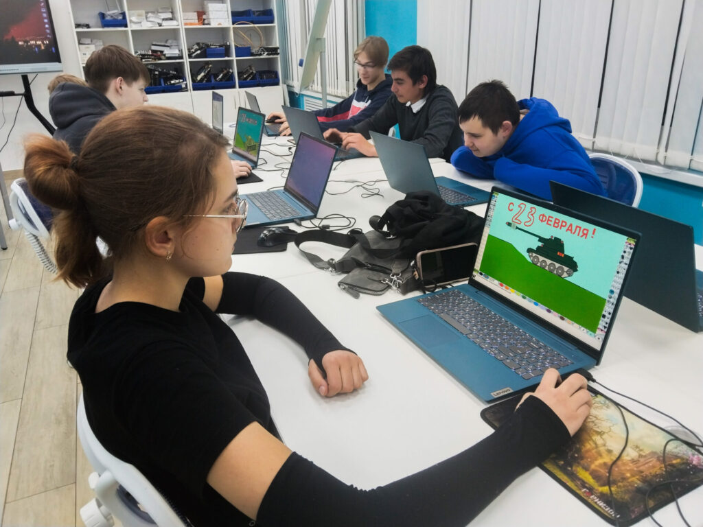 На тематических занятиях ребята объединили высокие технологии с душой праздника. Вместо привычных кода и алгоритмов, наши юные программисты, дизайнеры и инженеры создавали праздничные открытки. Кто-то рисовал их в графических редакторах, кто-то создавал анимацию, а кто-то собирал алгоритмы для поздравлений — каждый поздравил защитников по-своему!