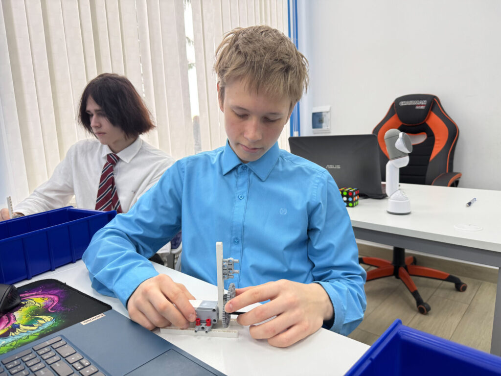 К нам в гости пришли ученики 9в класса МБОУ ДСОШ №1 вместе с классным руководителем — Косенко Никитой Львовичем. Вместо привычного урока ребят ждал настоящий научный вызов: мастер-класс о способах передачи энергии и превращении силы в скорость в рамках направления «Юнтехи»!