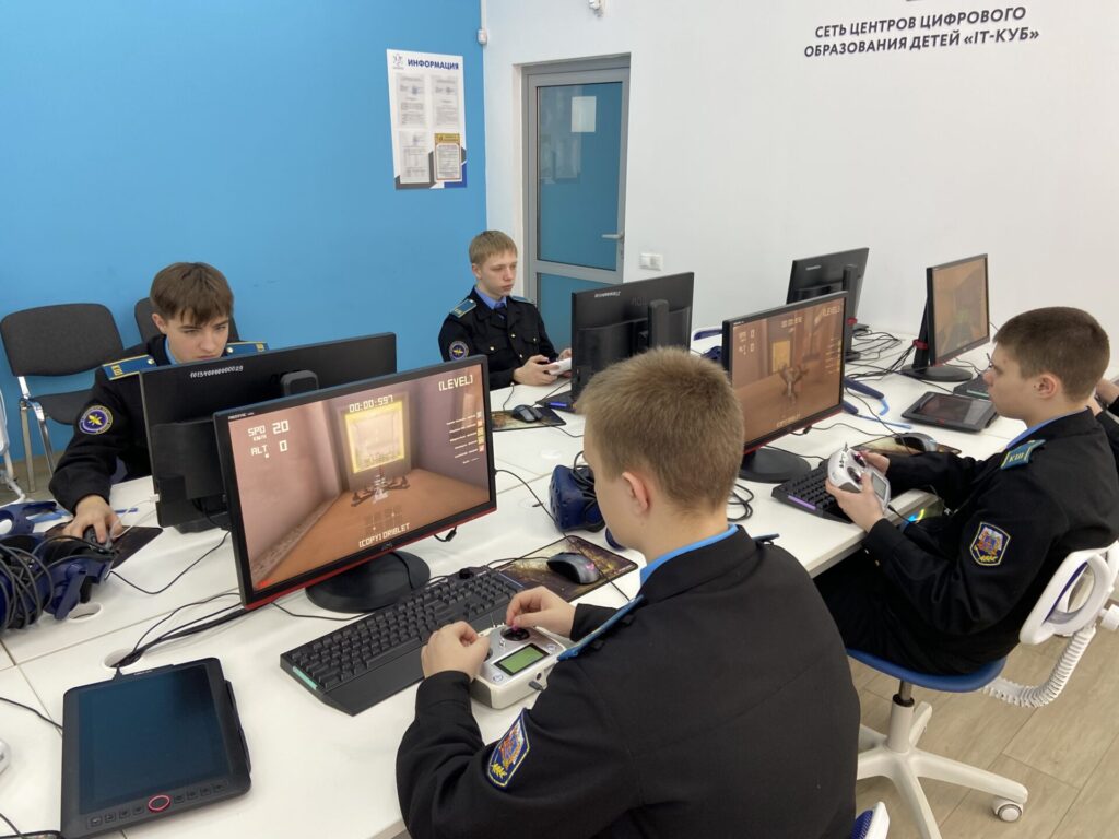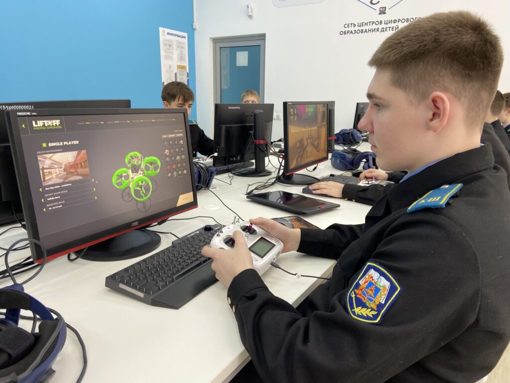 . Под руководством опытных наставников — Ликсанова Дмитрия Сергеевича и Медина Артема Александровича — ребята отрабатывали навыки управления дронами на профессиональном симуляторе.