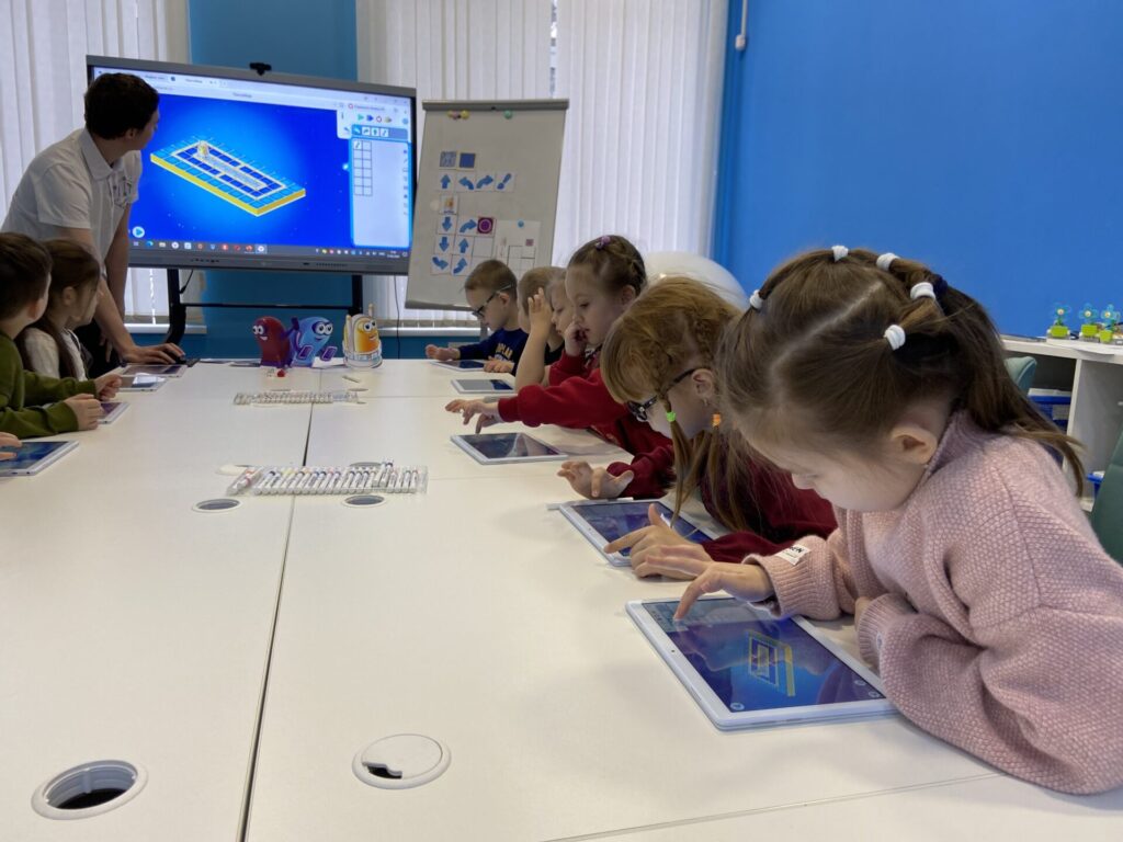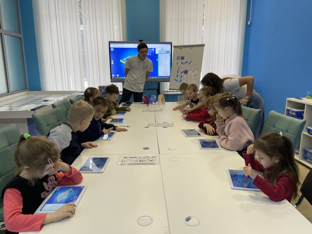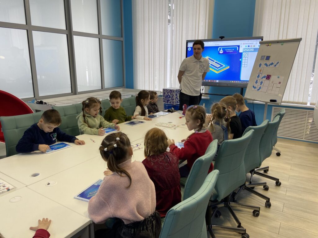 Воспитанники старшей группы вместе с воспитателем Харабровой Галиной Николаевной погрузились в мир алгоритмики. Занятие провели наши педагоги — Щербакова Татьяна Викторовна и Грязнов Егор Алексеевич.