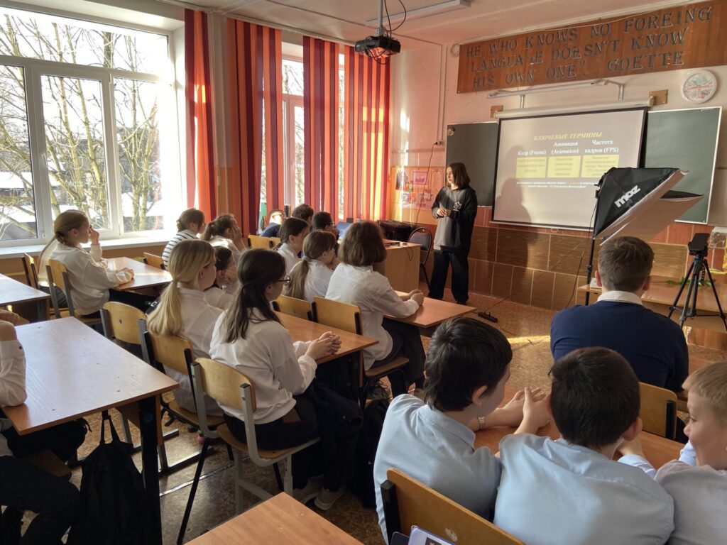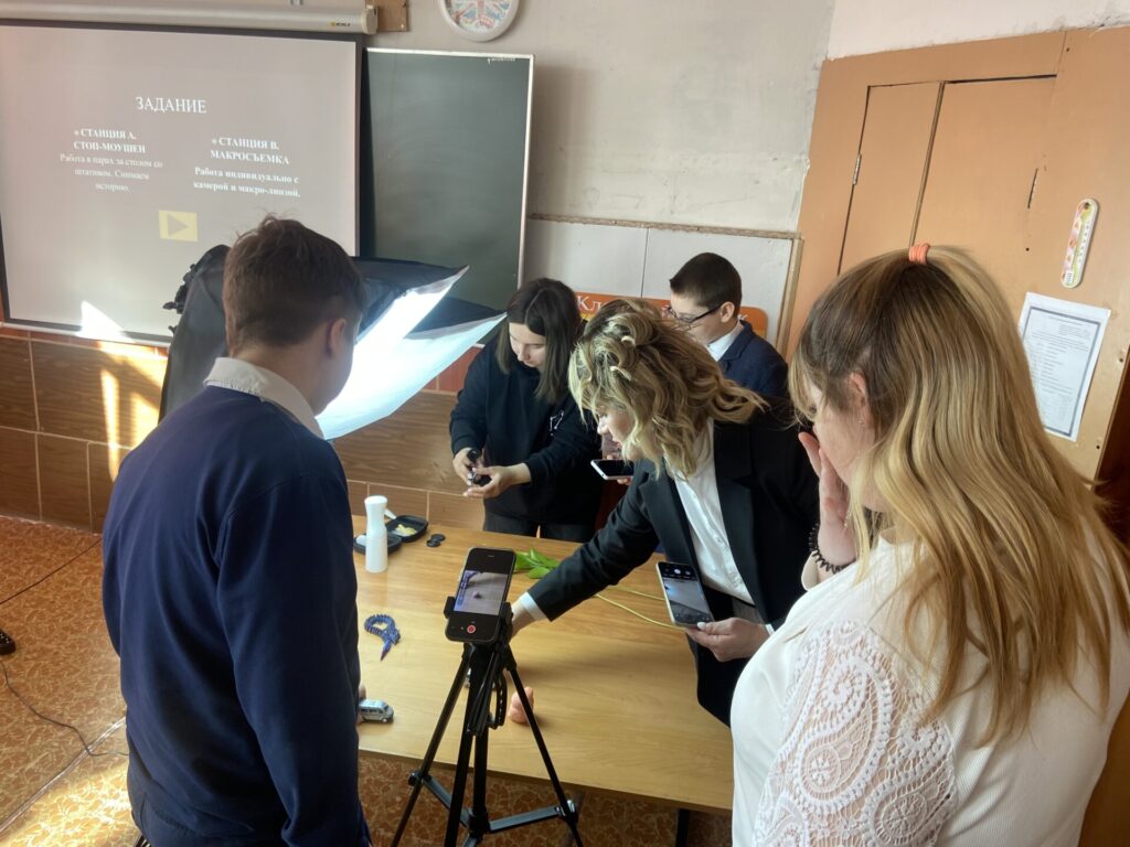 Для учеников 7д (классный руководитель Юлия Геннадьевна Короткова) и 6в (классный руководитель Кристина Олеговна Ващейкина) прошёл необычный мастер-класс. Тема: «МИКРО-МИРЫ И ОЖИВШИЕ ИСТОРИИ: Стоп-моушен и макросъемка».
